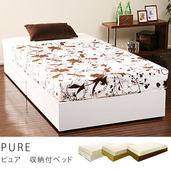 人気のホワイトカラーが魅力の飽きのこないシンプルなデザインのヘッドレスベッド。便利な引出付。【送料無料】マットレス付セミダブルベッド PURE(ホワイト/白/ローベッド/すのこ/モダン)【KF●113
