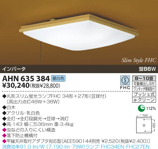 45%OFF!送料無料!コイズミ照明 和風照明 白木・アクリル乳白色 シーリングライト 都内23区限定取付工事セット AHN635384-set23【開梱設置】